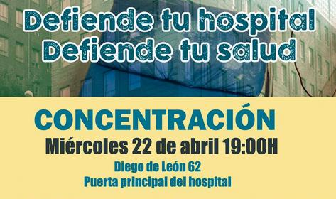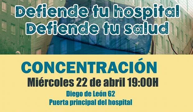 Miércoles, 22 de abril a las19:00 h Conde de Peñalver esquina Maldonado Lema: Defiende tu hospital, defiende tu salud. Trabajadoras y trabajadores del Hospital Universitario La Princesa, junto a asociaciones vecinales y plataformas ciudadanas de losdistritos de Salamanca, Chamartín y Ciudad...