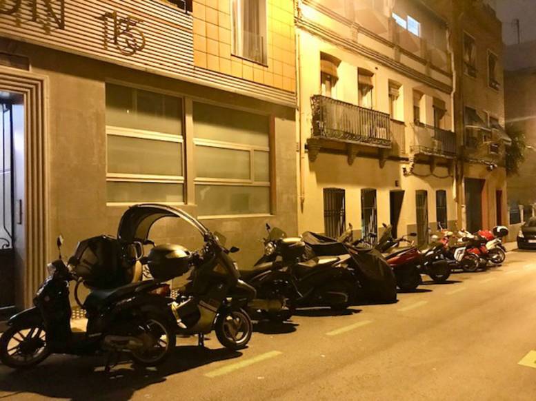 Desde hace aproximadamente dos años, el estacionamiento de motos en batería está yendo en llamativo aumento en franjas de unos 30 a 40 metros en el pasaje de la Fundación (Guindalera). Se trata de una calle angosta con coches estacionados a ambos lados y tres vados permanentes. A tenor de la actual ordenanza de movilidad, cierto es que esto no implica infracción alguna. El problema es que los pequeños espacios que dichas motos dejan son a menudo impracticables para estacionar un coche, dado que una vez que los motoristas se van dejan huecos de 1 o 2 metros libres.