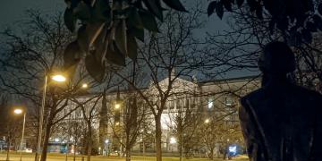 Era una noche estrellada. El bramido de algunos coches pasando a gran velocidad por Recoletos se alternaba con ciertos momentos de silencio. La luz de las farolas proyectaba sobre el suelo trazando diseños oníricos. Mientras tanto, sobre la Biblioteca Nacional, domina el territorio una luna gibosa...