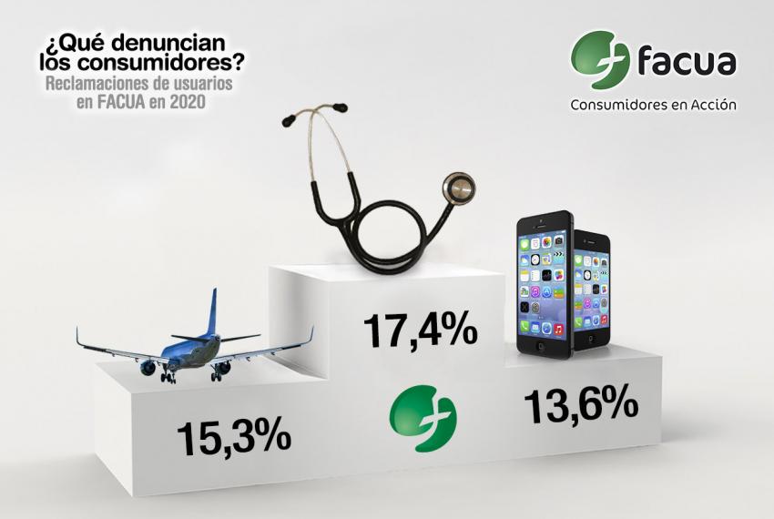 FACUA-Consumidores en Acción recibió 106.097 consultas y denuncias en 2020, una cifra récord motivada por las irregularidades cometidas durante la pandemia. La negativa a reembolsar el importe de servicios que los usuarios no han podido disfrutar por ella provocó que casi un tercio de las reclamaciones, el 27,8%, estuviesen protagonizadas por aerolíneas y empresas de los sectores del turismo y el ocio.