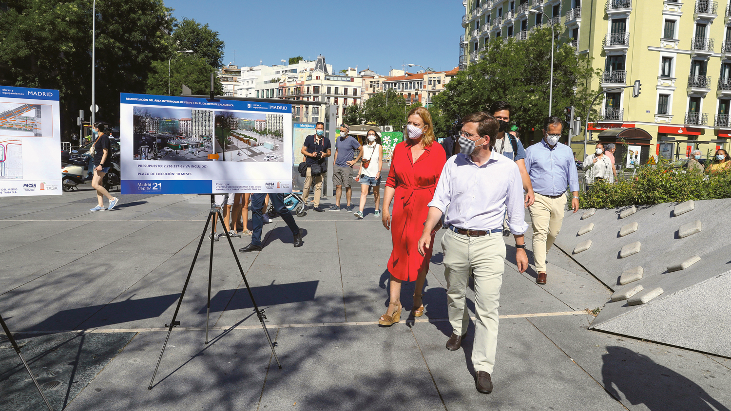 El alcalde de Madrid, José Luis Martínez-Almeida, recorría el 5 de agosto junto a la delegada de Obras y Equipamientos, Paloma García, el área intermodal de la avenida de Felipe II comprendida entre las calles de Alcalá y Narváez, en proceso de remodelación y cuya ejecución supondrá una inversión de 2,3 millones de euros.