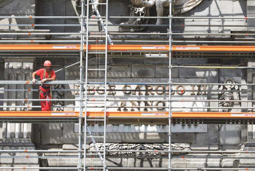 El Ayuntamiento ha iniciado los trabajos para la restauración de la Puerta de Alcalá, Bien de Interés Cultural y Patrimonio Mundial de la UNESCO como parte del Paisaje de la Luz. Se trata de una intervención que permitirá la consolidación estructural de los grupos escultóricos, la sustitución del plomo de la cubierta y el tratamiento de la piedra en todas las fachadas del monumento. La realización de las obras implica la ocupación parcial de la rotonda de la plaza de la Independencia, cuyo perímetro será protegido con un vallado cerrado con lona.