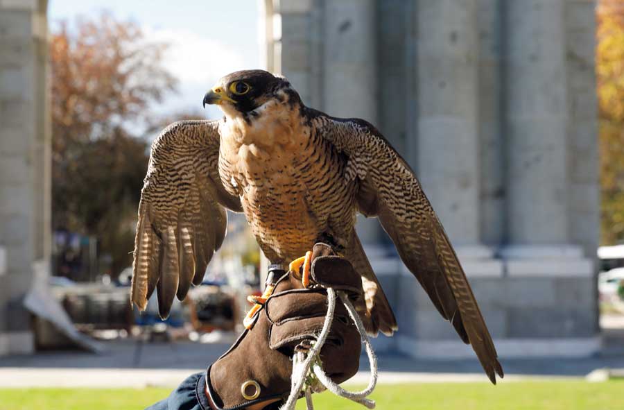 El Ayuntamiento de Madrid ha puesto en marcha un nuevo sistema de conservación de la Puerta de Alcalá que consiste en emplear un halcón y dos águilas para ahuyentar a las palomas, causantes de la afección biológica más destacada del monumento. Esta medida no se ha aplicado hasta ahora en la conservación de monumentos del Ayuntamiento, por lo que se trata de una medida sin antecedentes en la ciudad que se irá valorando progresivamente a lo largo del año 2024.