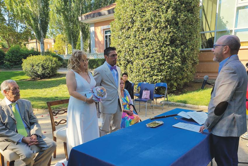 Siguen las bodas en el Parque Quinta de la Fuente del Berro: en esta ocasión ha sido la radiante pareja formada por Julián Vivas y María Aurora Moya, a quienes ha unido en matrimonio el concejal del Distrito Salamanca, José Fernández Sánchez, asistido estupendamente por Ángela Ramos Portillo. Componen una bella imagen, ¿verdad que sí?