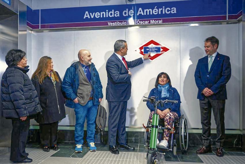 El nuevo vestíbulo de Avenida de América, con acceso desde la calle María de Molina, lleva el nombre de Óscar Moral, ex-presidente del CERMI Madrid, fallecido el pasado julio. Durante el homenaje, celebrado el 20 de febrero, el consejero de Vivienda, Transportes e Infraestructuras, Jorge Rodrigo, ha asegurado que “esta placa conmemorativa destaca su figura como uno de los principales impulsores de la accesibilidad en el transporte público madrileño y reconoce su labor al frente de esta entidad social”.