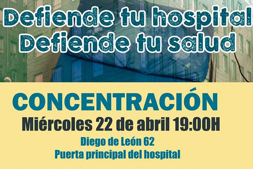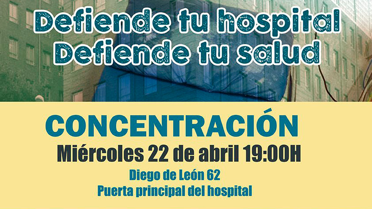 - Miércoles, 22 de abril a las19:00 h Conde de Peñalver esquina Maldonado Lema: Defiende tu hospital, defiende tu salud.