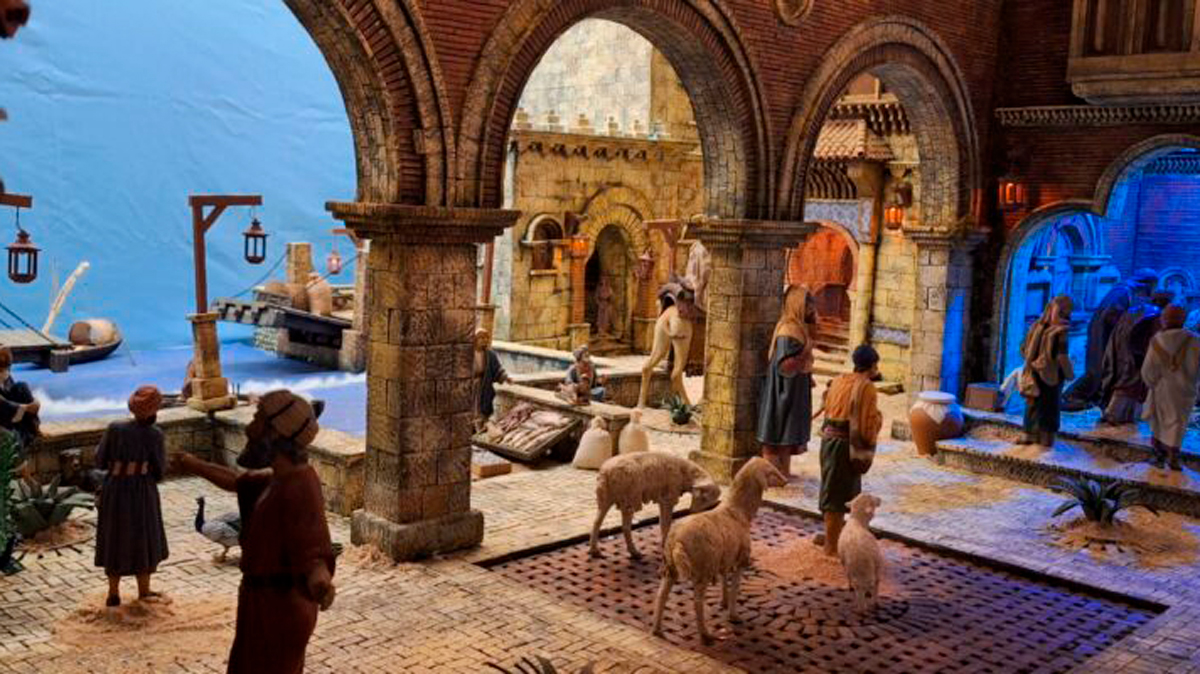 El nacimiento tradicional del distrito cuenta con figuras realizadas por prestigiosos artistas belenistas como José Luis Mayo, José Ángel Oviedo, Daniel López Alcántara o Montse García. Estas piezas representan escenas bíblicas y oficios de la época, así como diversas figuras de animales. Las construcciones del belén recrean el entorno con todo detalle, empleando materiales como corcho, musgo, arena, piedras y vegetación tanto artificial como natural.