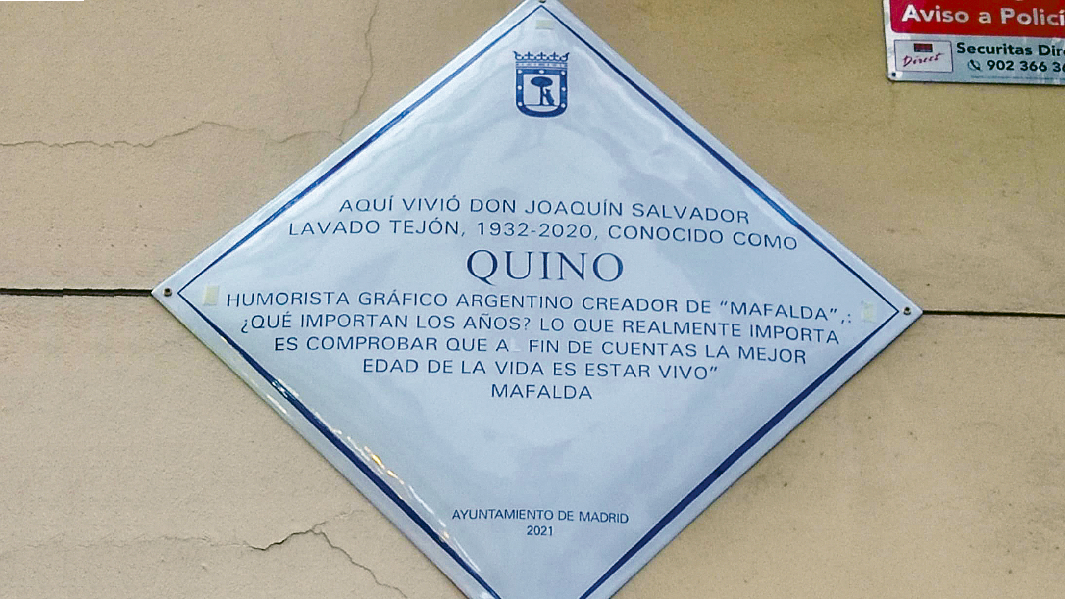 La placa se ha colocado en el número 61 de la calle de Don Ramón de la Cruz, donde el humorista, nacido en Mendoza (Argentina) de padres españoles, pasó largas temporadas en un piso de alquiler. “Cuando quiso comprarlo ha explicado el concejal, los propietarios no quisieron vender, y entonces Quino se compró otro en la finca de al lado, en el número 59. Al final, este artista universal, que ha hecho una aportación incalculable al mundo de la cultura, se quedó en esta calle de nuestro distrito, y eso nos llena de orgullo”.