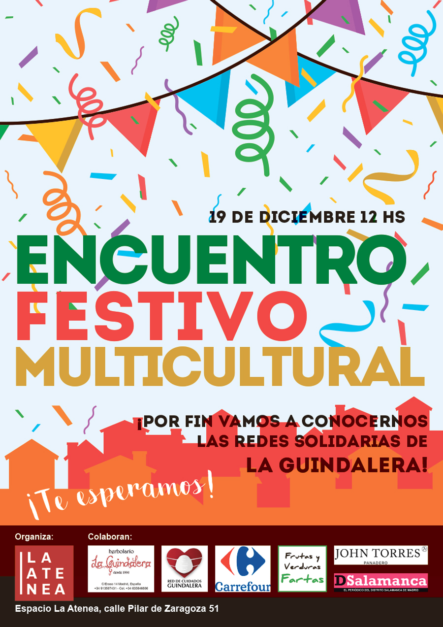 El encuentro de la red de cuidados y la despensa solidaria de La Guindalera por fin va a tener lugar. El próximo domingo 19 de diciembre, en el Espacio La Atenea, nos encontraremos personas voluntarias y usuarias de este proyecto vecinal que ha resuelto tantas necesidades y carencias en época COVID.