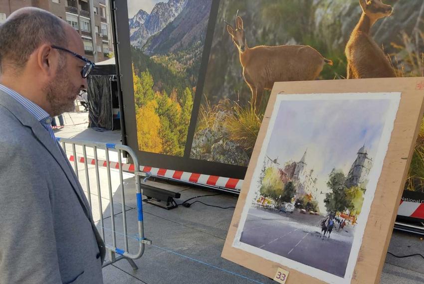 José Fernández, concejal del distrito, visitó a los participantes que, desde las 8:00 h, salpicaban la plaza con sus caballetes y pinceles
