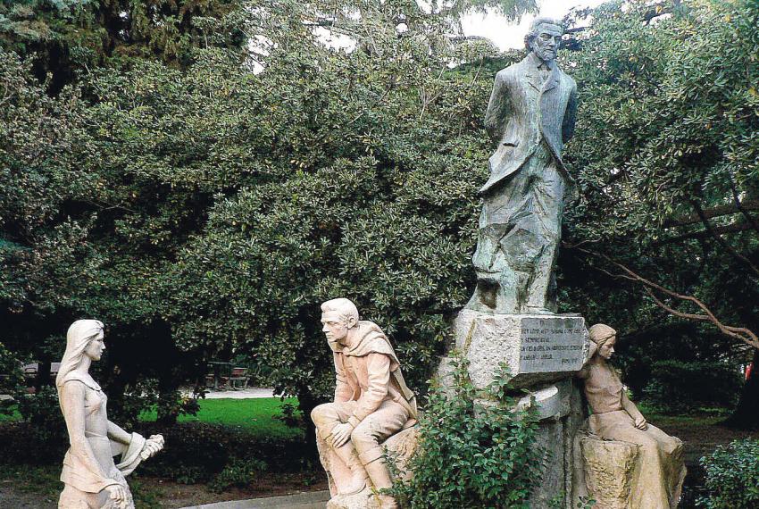 Terminaron mis pasos azarosamente ante un madroño, el mayor del parque. Cerca de él existe un pequeño estanque, y en él un conjunto escultórico.