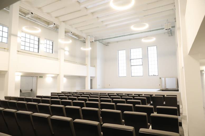 El edificio principal consta de un cuerpo central que alberga el vestíbulo, desde donde se articulan dos volúmenes que se corresponden con la Biblioteca David Gistau y un salón de actos. El proyecto de reforma ha supuesto la remodelación del inmueble y su adaptación a la normativa vigente en materia de accesibilidad.