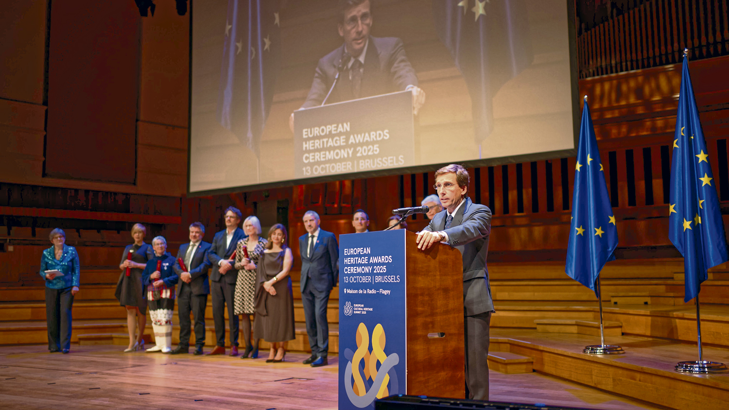 El alcalde de Madrid, José Luis Martínez-Almeida, recogió el 13 de octubre en Bruselas el European Heritage Award/Europa Nostra Award 2025 concedido a la restauración de la Puerta de Alcalá, el máximo reconocimiento que otorgan la Comisión Europea y Europa Nostra para destacar los proyectos más sobresalientes en materia de conservación del patrimonio. La ceremonia de entrega, celebrada en el Studio 4 de La Maison de la Radio de la capital belga, reunió a representantes de los 30 proyectos premiados, con iniciativas como el Ayuntamiento de Amberes (Bélgica), la Fortaleza de Peniche (Portugal) o el antiguo Museo Municipal de Nicosia (Chipre).