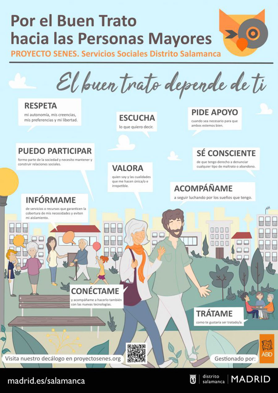 Para conmemorar este día mundial, la Junta Municipal de Salamanca cuenta con la participación del comercio de proximidad. Por eso, durante la mañana del próximo miércoles, los comercios de barrio y los puestos de los cuatro mercados municipales del distrito mostrarán la cartelería de la campaña ‘Un buen trato depende de ti’, en apoyo a esta iniciativa.
