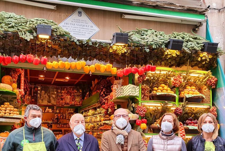El concejal del distrito de Salamanca, José Fernández, ha descubierto una placa en homenaje a una de las fruterías más antiguas de la ciudad, Fruterías Vázquez. Inaugurada en 1943, este establecimiento de la calle Ayala, 11, a escasos metros de la calle de Serrano, es conocido por llevar más de 75 años formando parte de la cultura y gastronomía madrileña.