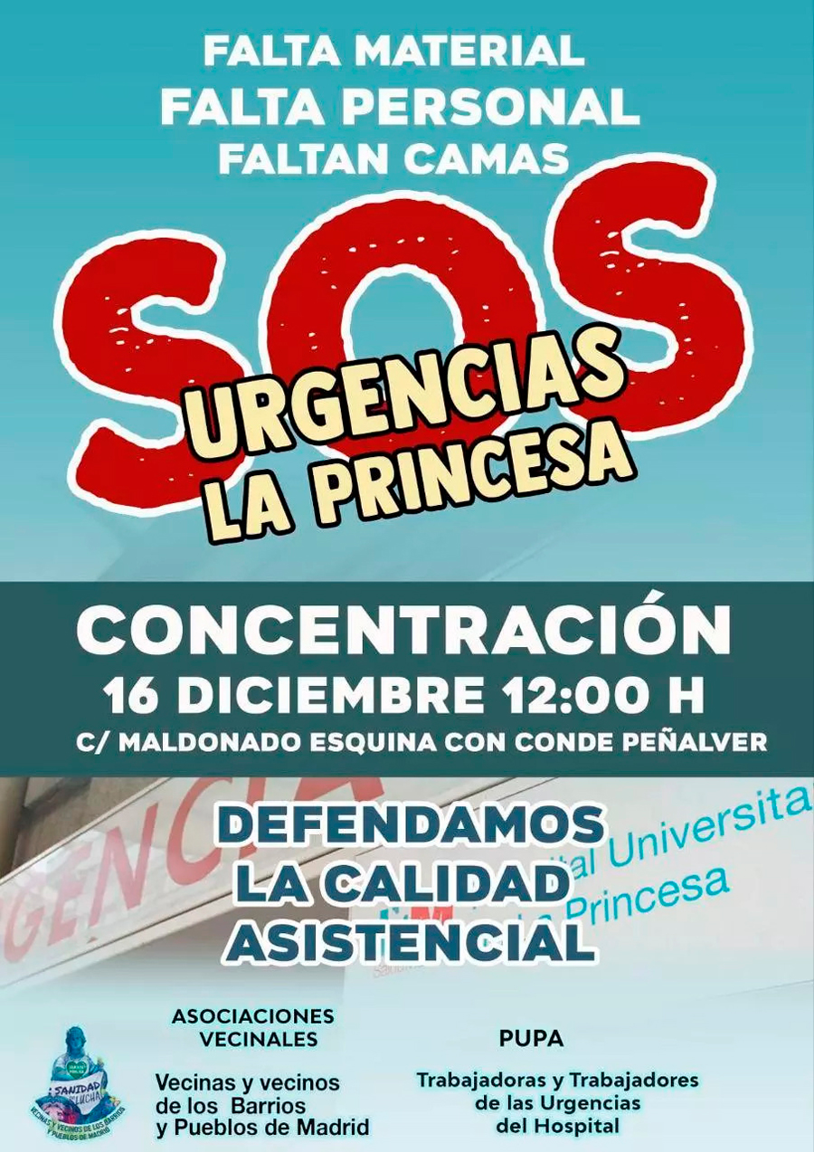 SOS Urgencias La Princesa. Martes 16 a las 12:00 horas