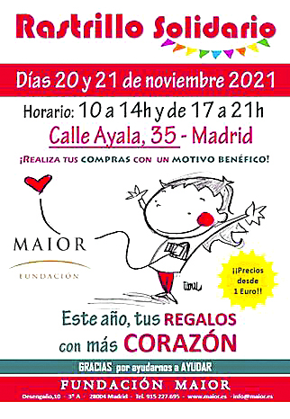 Uno de los primeros que tendrán lugar en el Distrito Salamanca es el que organiza la Fundación Maior el 20 y 21 de noviembre. Desde hace 15 años apoyan colegios y comedores sociales en México y Honduras. Los vecinos, e incluso personas de muy lejos, preguntan por él, y consideran una cita obligada la del Rastrillo Solidario Maior en C/Ayala, 35. Aprovechemos los buenos precios, la variedad de cosas y, sobre todo, colaboremos con nuestras compras con buenas causas. ¡Nos vemos allí!