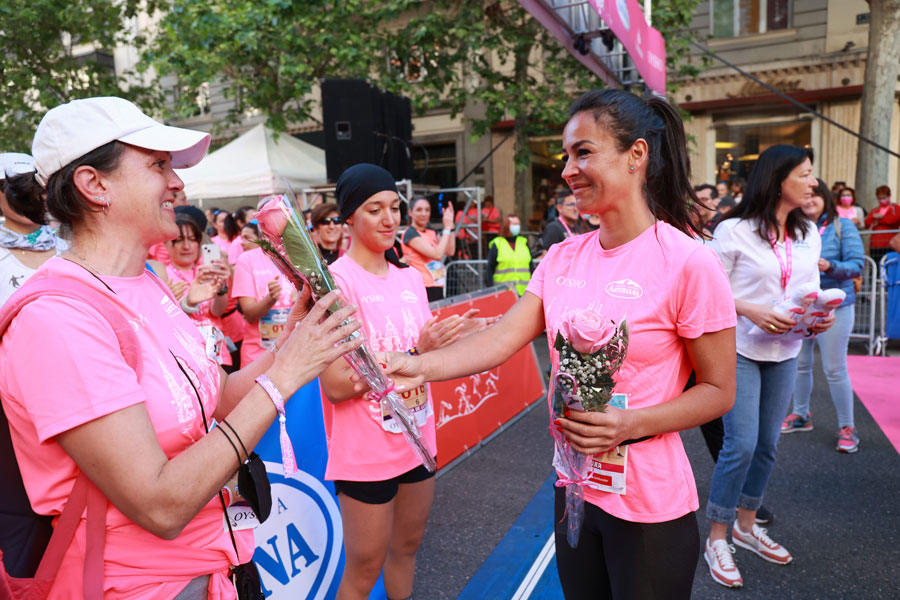 Las 30.000 corredoras que han participado en la prueba en diferentes categorías, individuales y colectivas, lo han hecho con el color rosa en sus camisetas para simbolizar la lucha contra el cáncer de mama y han lucido en sus dorsales el número 016, el teléfono de atención a las víctimas por violencia de género.