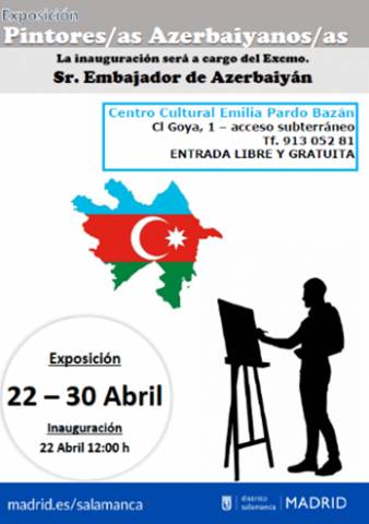 El CC Emilia Pardo Bazán acoge 3 propuestas. Del 1 al 21 de abril las pictografías Madrid Inn Posible, de Francisco Hidalgo. Y, del 22 al 30 de abril, es el turno de la exposición de jóvenes artistas de Azerbaiyán. Obras que nos aproximan al estilo y técnicas pictóricas de un país desconocido artísticamente.