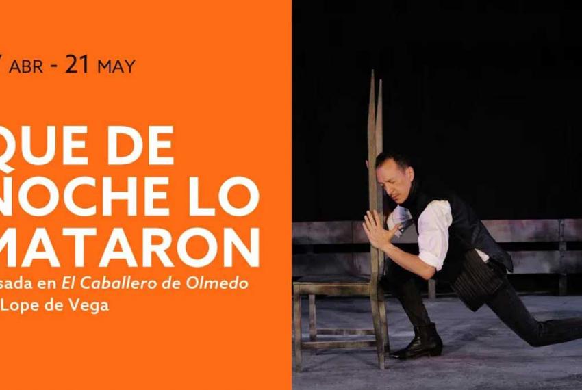 El teatro Fernán Gómez. Centro Cultural de la Villa presenta Que de noche lo mataron, dirigido por Ainhoa Amestoy, y basado en El caballero de Olmedo, con texto de Julieta Soria. Este montaje, que se podrá ver del 27 de abril al 21 de mayo de 2023 en este espacio del Área de Cultura, Turismo y Deporte, está interpretado por Juan Caña s, quien asume los dos papeles protagonistas: el mecánico actual y el caballero de Olmedo que recita los versos lopescos.