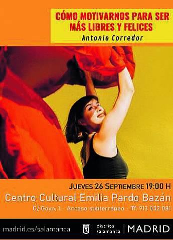 El profesor de Psicología y Filosofía Antonio Corredor dará la conferencia Cómo motivarnos para ser más libres y felices el 26 de septiembre. Al día siguiente tendrá lugar el taller de Protocolo o tendencia en la mesa, por Almudena González, que expondrá las últimas tendencias en montaje de mesas en una charla interactiva.