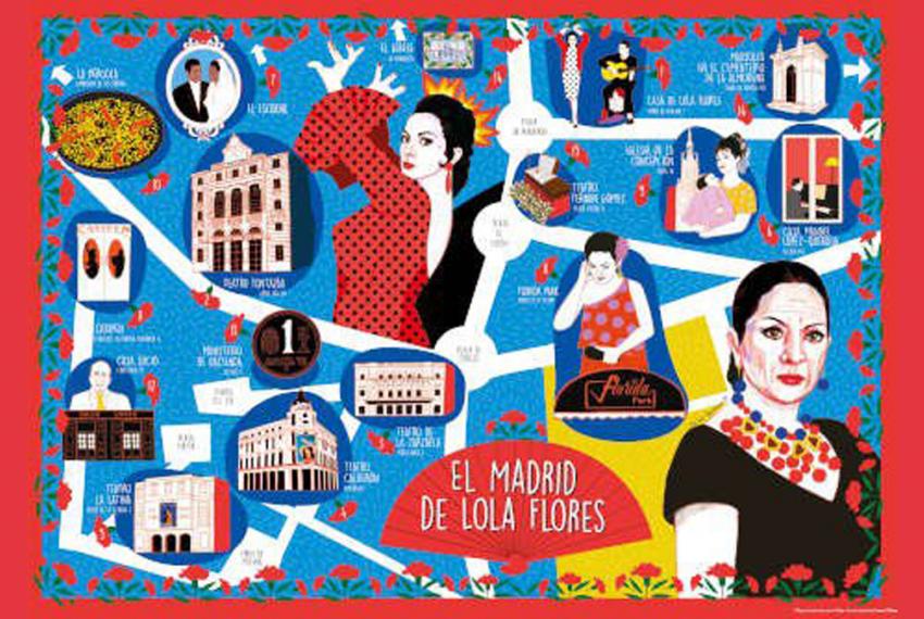 El Ayuntamiento publica un mapa ilustrado para descubrir el Madrid de Lola Flores