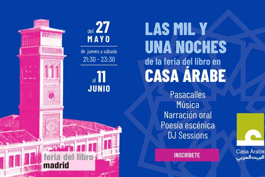 Del 27 de mayo al 11 de junio tendrán lugar en Madrid “Las mil y una noches de la Feria del Libro en Casa Árabe”, un programa de actividades con el que Casa Árabe dará continuidad a la oferta cultural de esta cita literaria y que presentará a los madrileños sesiones de narración oral, un concurso de poesía escénica y actuaciones musicales.