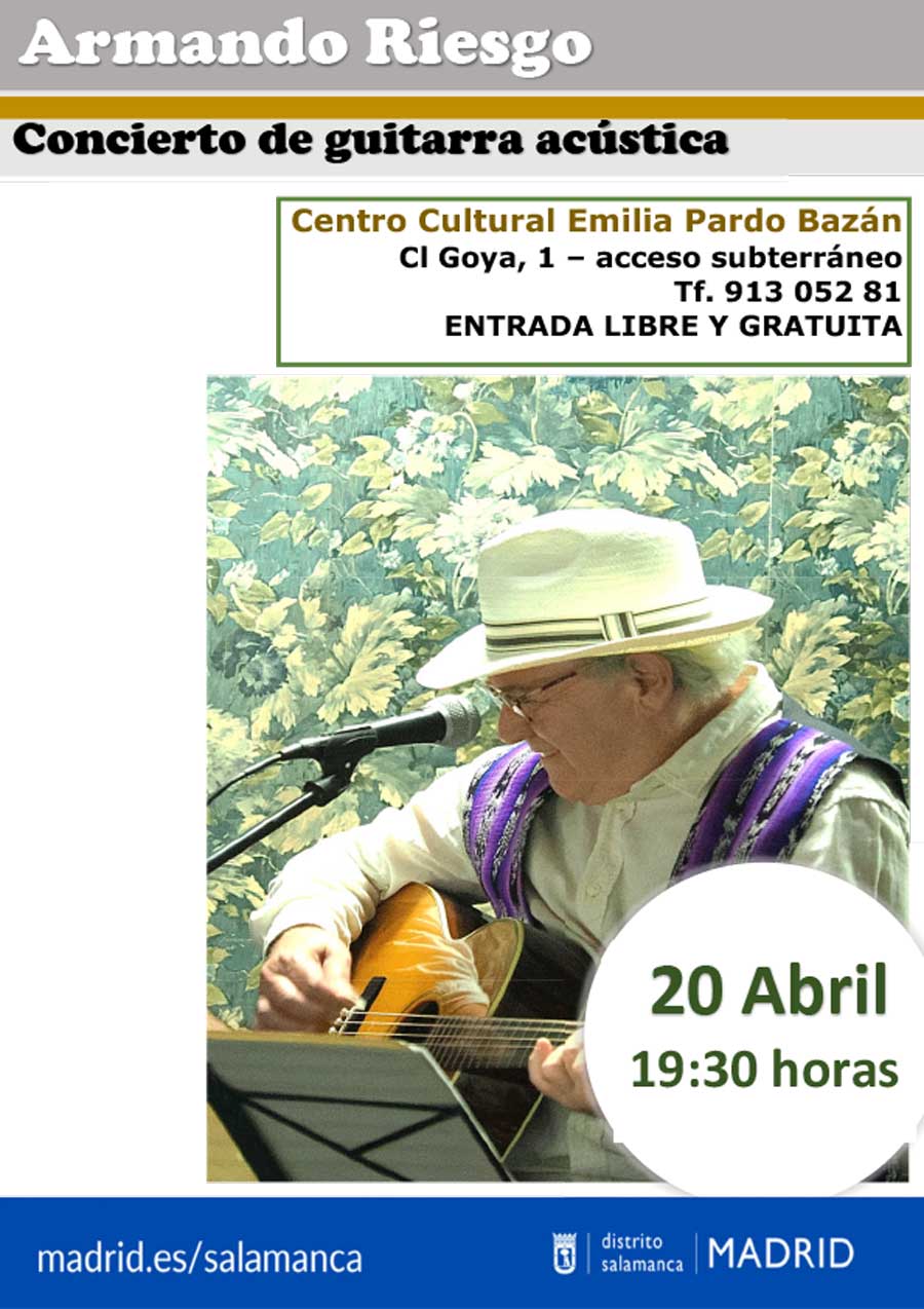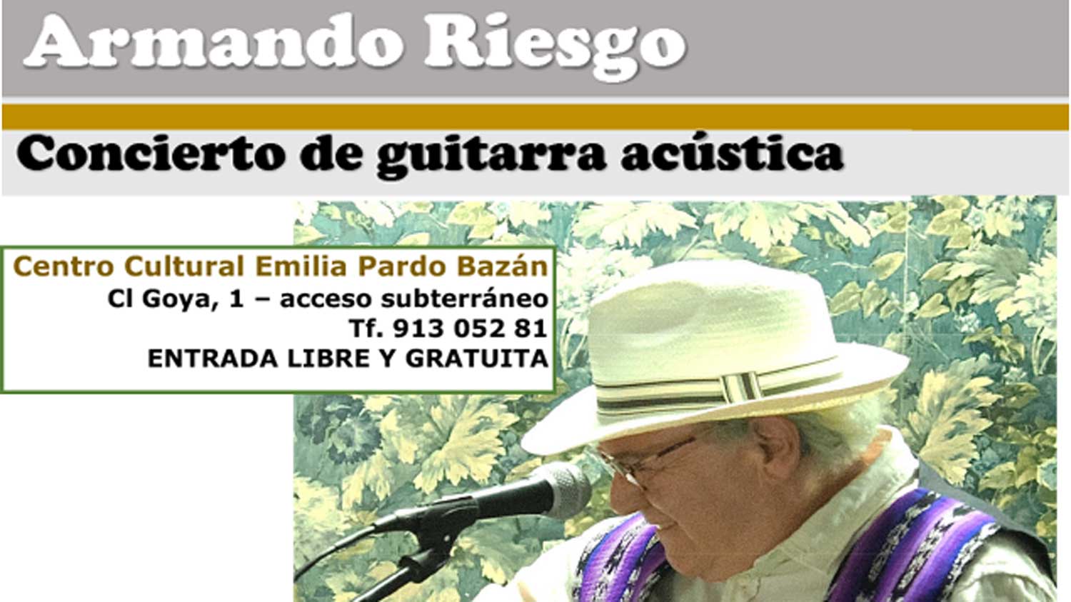Armando Riesgo actúa este sábado 20 de abril a las 19,30h, en el Centro Cultural Emilia Pardo Bazán.