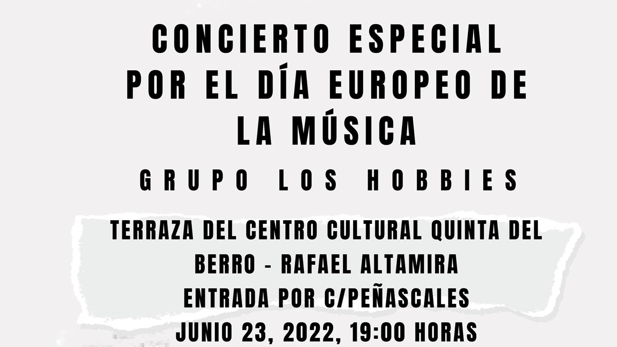 El jueves, 23 de junio, concierto especial por el Día Europeo de la Música, con la actuación del grupo Los Hobbies con José María Guzmán.