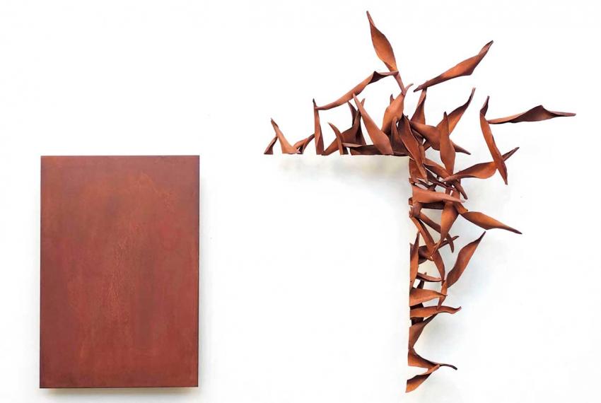 Bajo el título de Plenitud y vacío, las obras de Almodóvar se distribuirán por los distintos espacios de la galería, incidiendo en la importancia que la artista otorga a la (inter) relación y diálogo entre el objeto artístico y el lugar que ocupa. La galería se convertirá, de este modo, en territorio, en tierra fértil, en reducto de restos y huellas, en espacio que se abre al vacío y torna en pantalla de proyección de sombras. Las esculturas, síntesis y abstracciones de formas que remiten a un mundo orgánico, natural (vegetal, mineral) se muestran en su doble naturaleza material e inmaterial, delicada y robusta, bella y trágica, objeto e idea. Almodóvar está presente en cada una de las obras. Su humanidad. Su cuerpo y sus manos trabajando el hierro. El objeto artístico, material y corpóreo remite a los fundamentos básicos del arte. A la artista creadora, metamorfoseada en escultura, generadora, a su vez, mediante el lenguaje poético, de fenómenos, inquietudes, ideas y temores propios de la naturaleza humana.