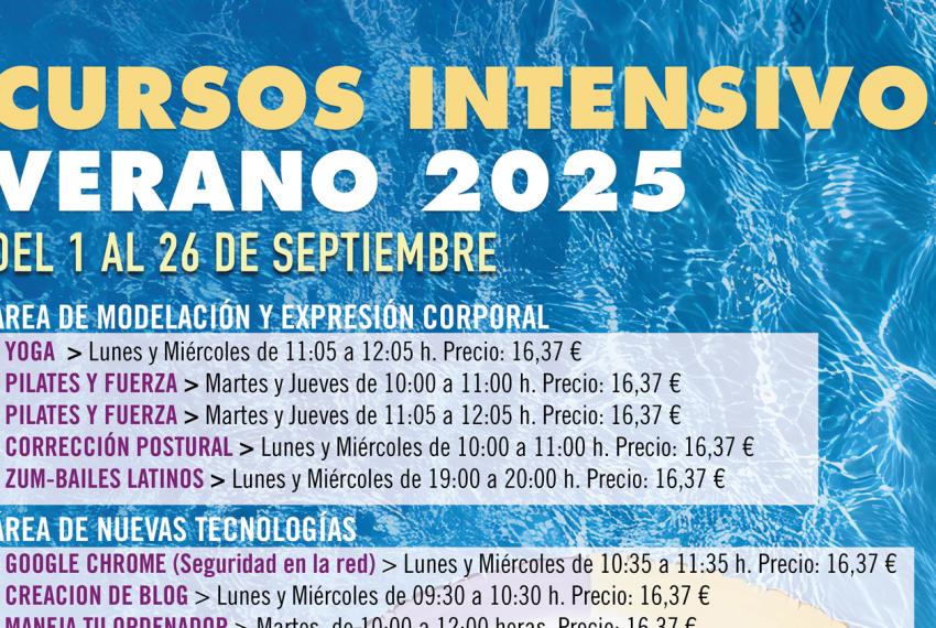 Estos cursos se desarrollarán entre el 1 y el 26 de septiembre. Esta variada oferta está dirigida tanto a niños como a adultos, e incluye áreas como modelación y expresión corporal, nuevas tecnologías, bellas artes y en el apartado de teóricas ofrece un taller de risoterapia y otro de estimulación musical. En las actividades infantiles ofrece, para los más pequeños talleres de música y psicomotricidad y también un divertido taller de bailes urbanos, ó también juegos y actividades creativas en inglés y un divertidísimo taller de magia para los más mayores, de 8 a 12 años.