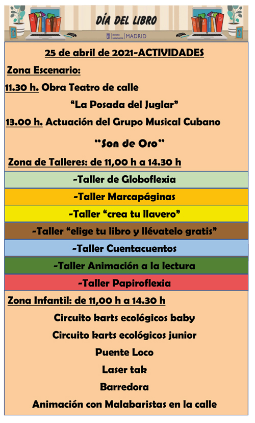Día del libro. Jornada Lúdica Infantil en el Distrito de Salamanca