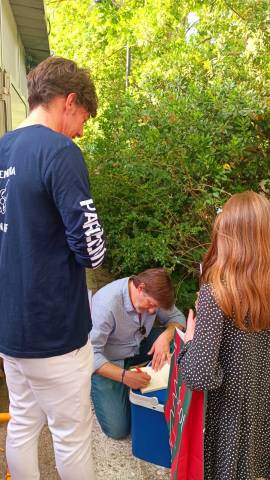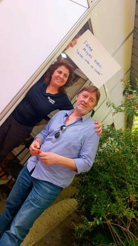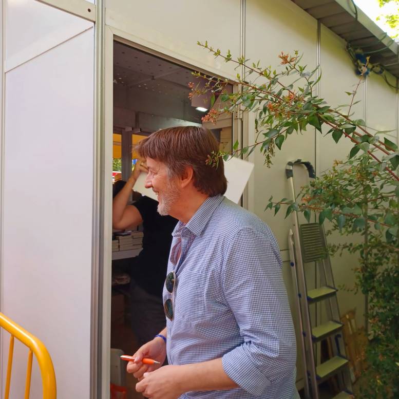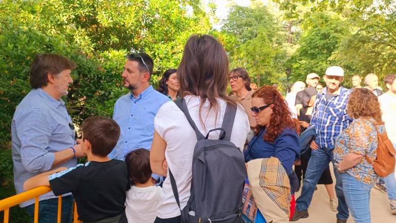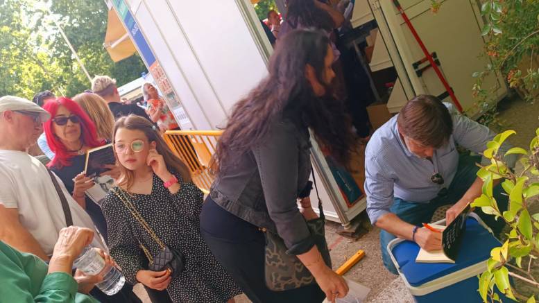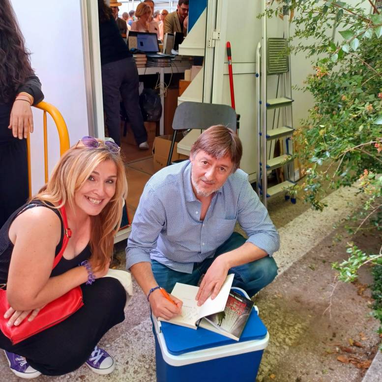 Pues, bien, el sábado 3 de junio, Rubio volvía a la misma caseta de la Librería Reno, una de las librerías más veteranas de Madrid, y lo hacía sin novedad literaria bajo el brazo. La sorpresa fue que se repitió la misma situación de hace dos años y tras agotar el tiempo firmando ejemplares de “Suave como la lluvia” y de sus anteriores títulos, algunos de ellos se agotaron esa misma tarde, el escritor terminaba firmando en el parque, durante otra hora más, a todos los lectores que se habían desplazado hasta allí para conseguir su ejemplar firmado y la foto correspondiente con el autor. Llamaba la atención el hecho en sí, y la cantidad de curiosos que se acercaban a ver qué sucedía. Todo un éxito para un escritor muy vinculado a nuestro distrito y que, esperamos, le anime a sentarse frente al teclado para volver a ofrecernos, en algún momento, otra de sus imprescindibles, originales y vertiginosas historias. Enhorabuena.