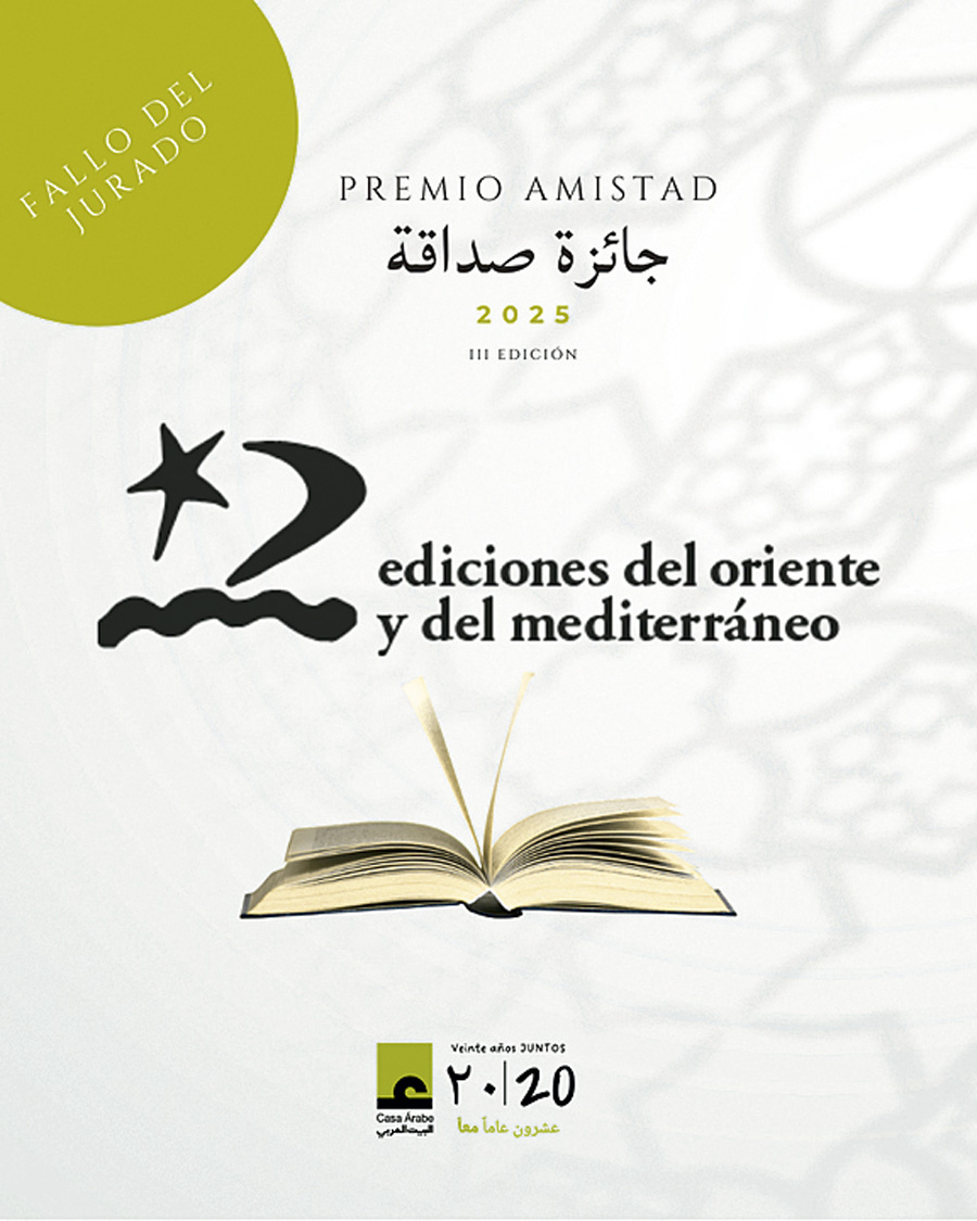 Casa Árabe anuncia el fallo del jurado de la 3ª edición del premio “Amistad”. Tras la sesión de deliberación, celebrada el 17 de febrero, se ha acordado otorgar la condecoración a Ediciones del Oriente y del Mediterráneo, editorial creada en 1989 por Fernando García Burillo e Inmaculada Jiménez Morell “para dar a conocer la literatura y las sociedades de ambos lados del mar Mediterráneo”.