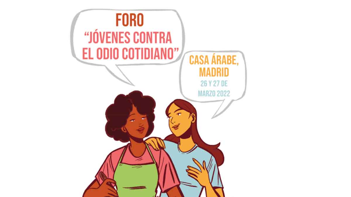 Los próximos días 26 y 27 de marzo tendrá lugar en la sede de Casa Árabe de Madrid el foro“Jóvenes contra el odio cotidiano”, en el que un centenar de personas unirán esfuerzos para establecer una hoja de ruta para hacer frente a este problema social. Este evento, enmarcado en el proyecto europeo “COCO: contra el odio cotidiano”, liderado por Cazalla Intercultural, de Lorca, junto con Jovesólides, de Valencia, y la Fundación Al Fanar, de Madrid; coincidirá con la semana del Día Internacional de la Eliminación de la Discriminación Racial.