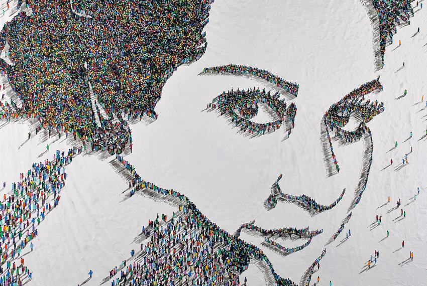 Jesús Alcolea nos presenta una alegoría de la humanidad, realizada con su inconfundible sello de identidad, los diminutos. Obras realizadas por multitudes de seres minúsculos, los cuales, con un objetivo en común, organizados y en comunión, forman dibujos realistas con sus cuerpos creando imágenes, a través de lo humano.