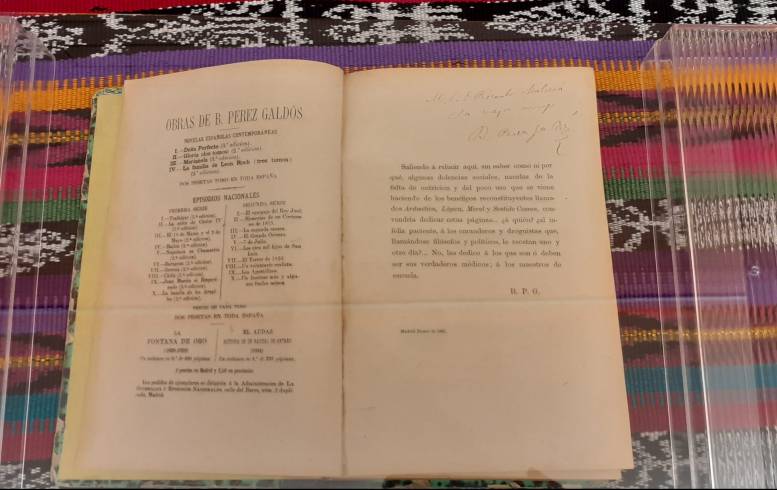 A parte de su Colección de ilustraciones de 1905, en su fondo cultural también han estado dos ejemplares firmados por el hijo predilecto de Madrid, Benito Pérez Galdós, uno de los cuales se pudo ver el día de la inauguración de esta muestra ilustrada. Un ejemplar único dedicado de puño y letra por Pérez Galdós a “Ricardo Molina, su mejor amigo”. Publicado en el mes de enero de 1881 y editado en Madrid, contiene la obra La desheredada, cuyo precio de venta, según figura en el interior de la obra, fue de dos pesetas de la época.