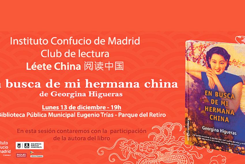La obra escogida es En busca de mi hermana china, de la periodista y escritora Georgina Higueras, que estará presente para hablar en primera persona sobre su novela y sobre el contexto en el que se ambienta.