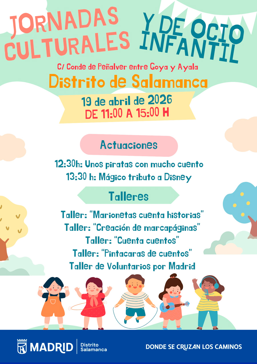 El próximo domingo 19 de abril, de 11h a 15h, en la calle Conde de Peñalver (en el tramo comprendido entre las calles de Goya y Ayala), celebraremos la Jornada Cultural y de Ocio Infantil: Día del Libro.