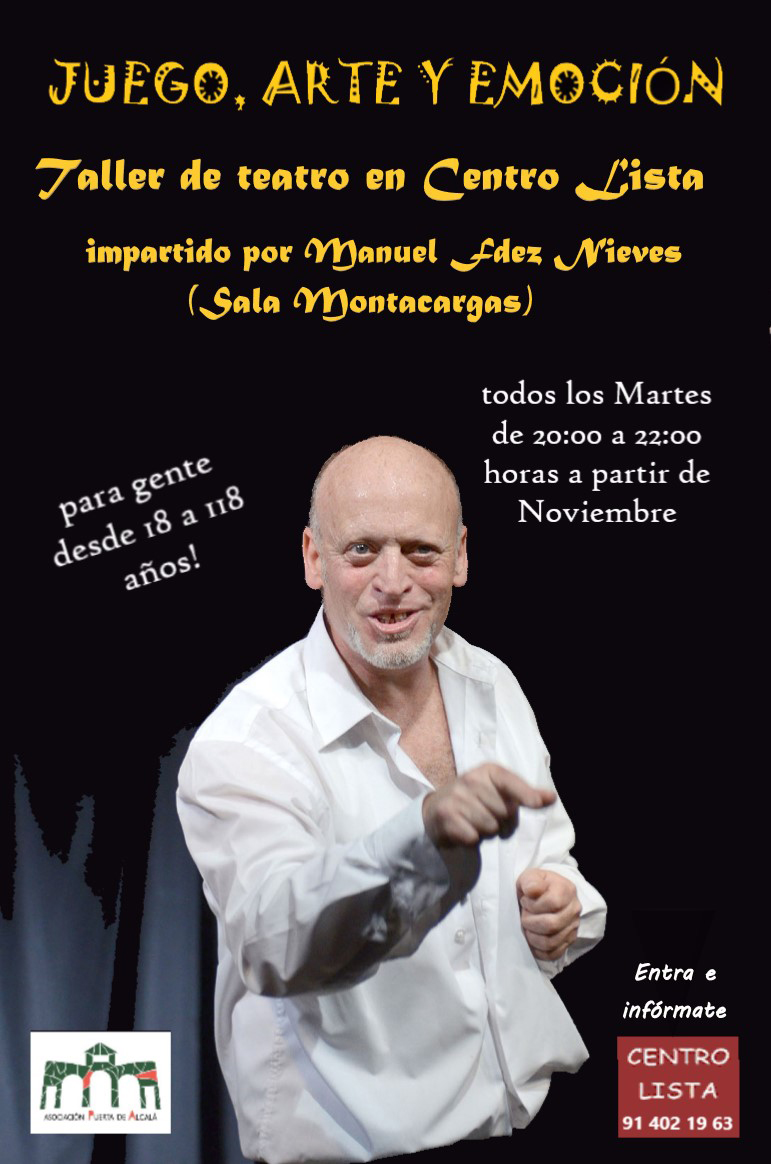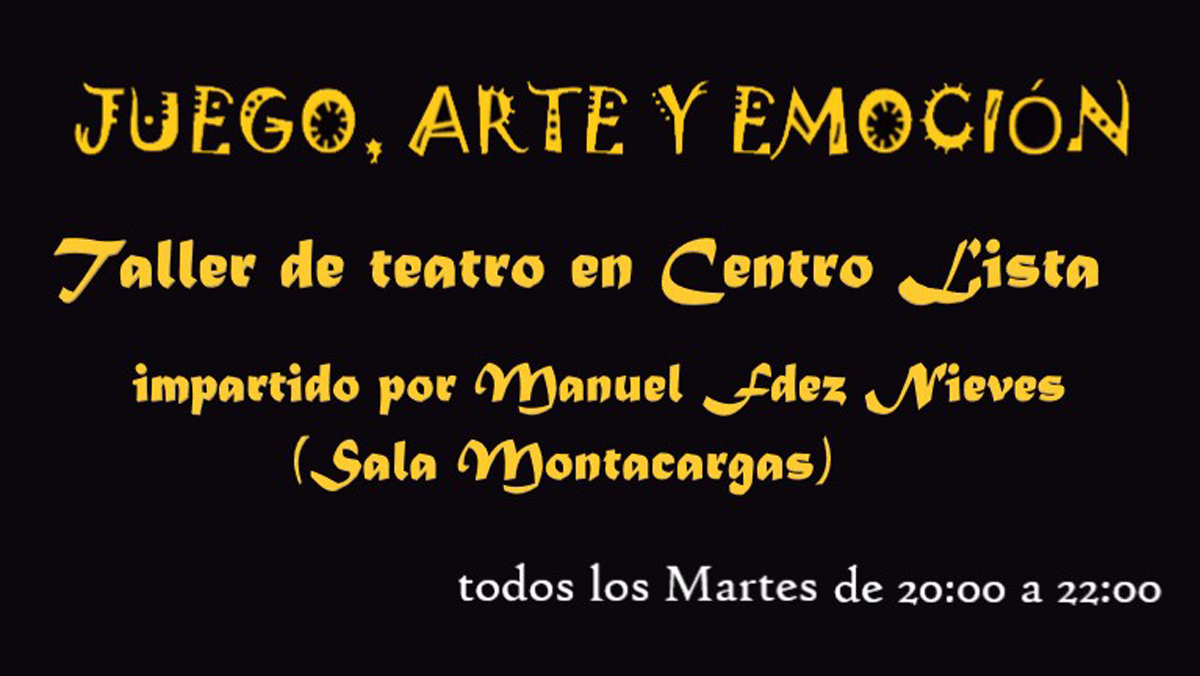 A partir del martes 2 de noviembre, bajo el título Juego, arte y emoción, Centro Lista ofrece un curso de teatro para adultos, dirigido a todos los niveles: desde el aficionado que quiere sentir por primera vez la emoción de la escena hasta estudiantes de teatro y actores en ciernes.