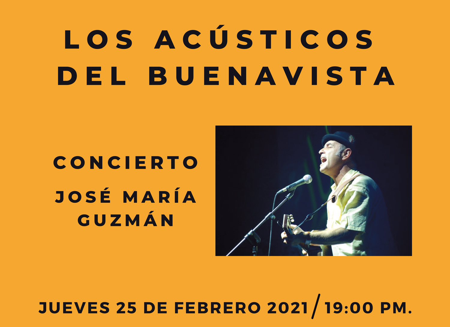 Tenemos el placer de anunciaros que el jueves, 25 de febrero, a las 19 horas, se inicia el segundo ciclo de conciertos “Los Acústicos del Buenavista” con la actuación del mítico músico José María Guzmán.