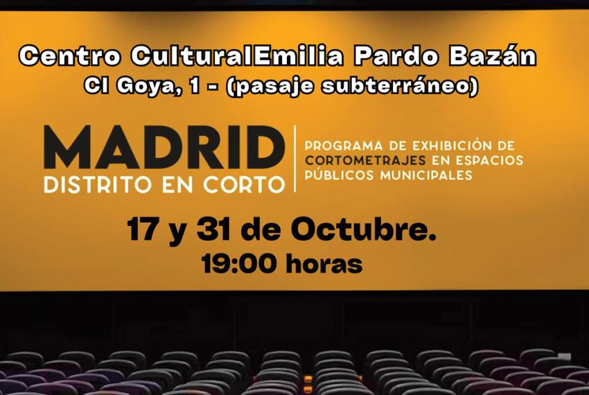 Tenemos el placer de recordaros que los días 17 y 31 de octubre a las 19h, en el Centro Cultural Emilia Pardo Bazán, tendrá lugar una nueva edición del Programa de Exhibición de Cortometrajes en Espacios Públicos Municipales: MADRID EN CORTO.