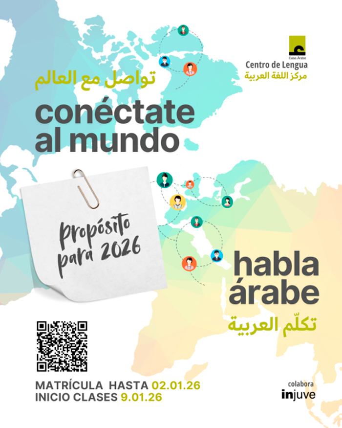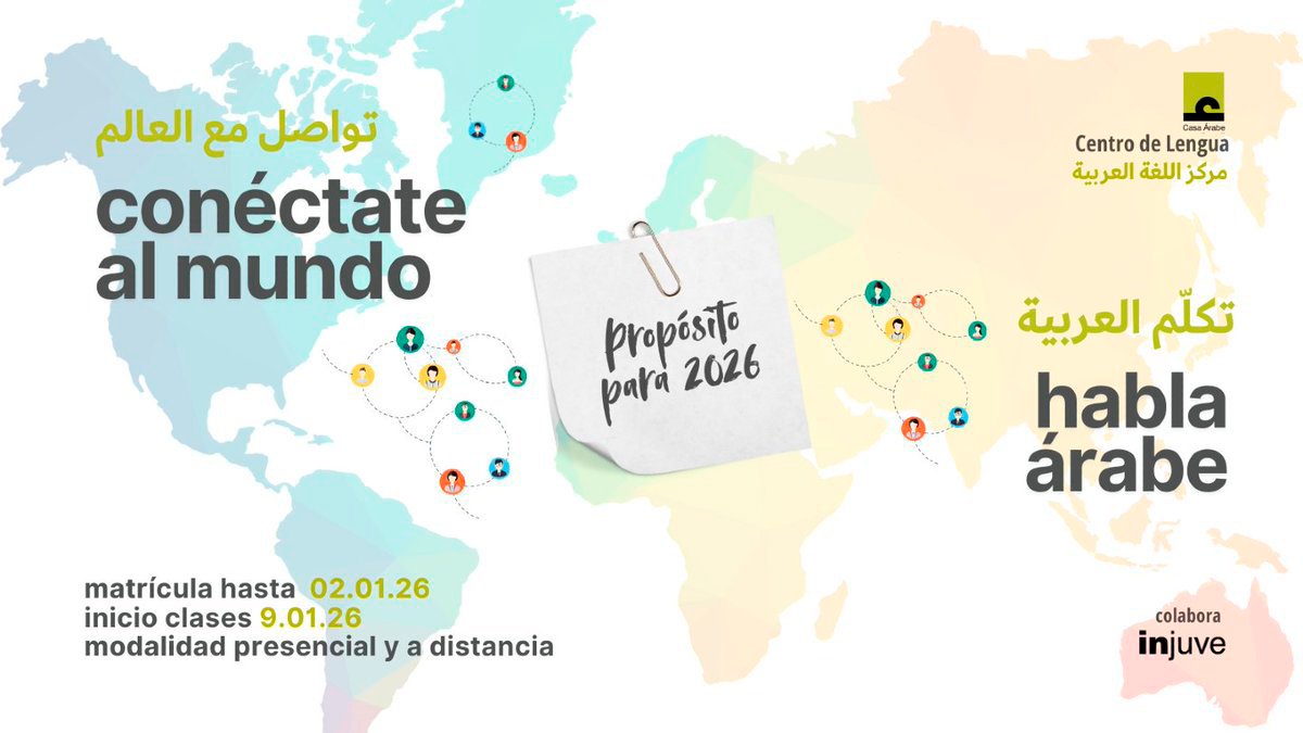 Desde hoy 9 de diciembre está abierto el plazo para matricularse en los cursos de lengua árabe y dialectos del Centro de Lengua de Casa Árabe, que darán comienzo el 9 de enero de 2026. Para este segundo trimestre, la institución refuerza la oferta de cursos a distancia, de manera que quien se haya propuesto aprender árabe como propósito de año nuevo pueda hacerlo desde cualquier lugar, con una gran amplitud de horarios.