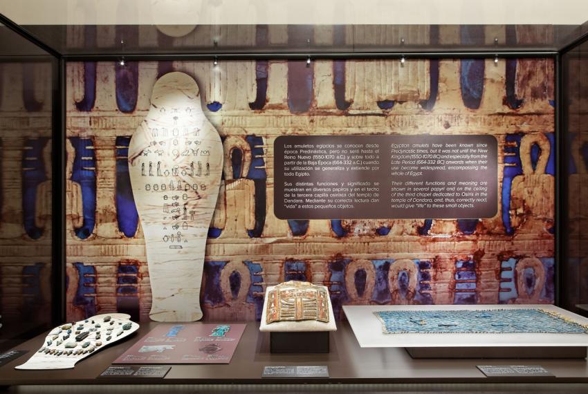 - Además de un amplio repertorio de amuletos, podrán verse una malla funeraria y un cartonaje conservados en las áreas de reserva del museo