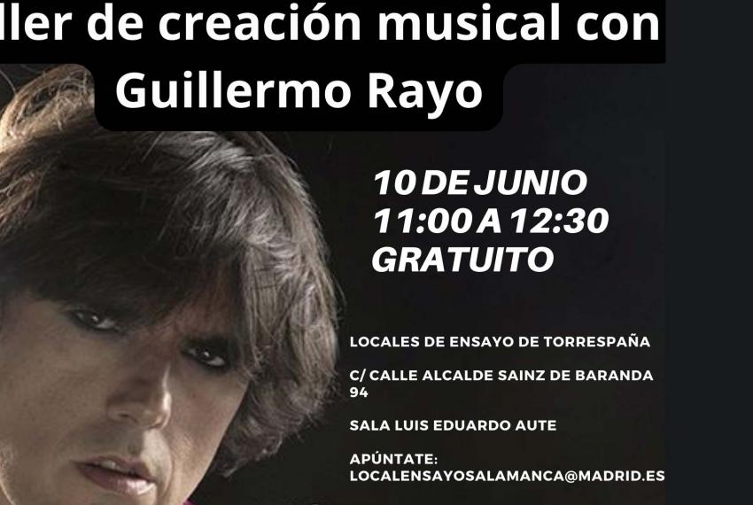 El sábado, 10 de junio a las 11h, en los Locales de Ensayo de Torrespaña se impartirá un taller de creación musical, de carácter gratuito, a cargo del polifacético artista Guillermo Rayo.