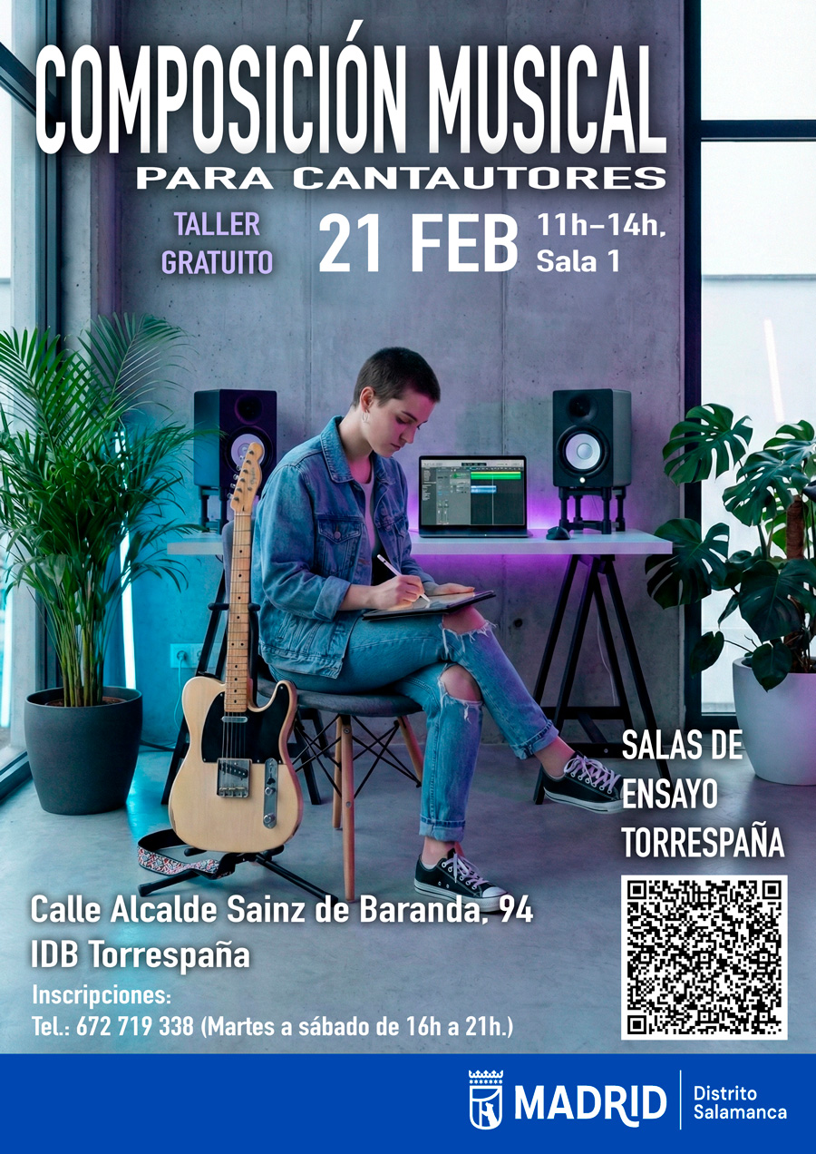 Tenemos el placer de anunciaros el primer taller gratuito de composición musical que se impartirá en los Locales de Ensayo de Torrespaña, calle Alcalde Sainz de Baranda 94, el sábado 21 de febrero, a las 11h.