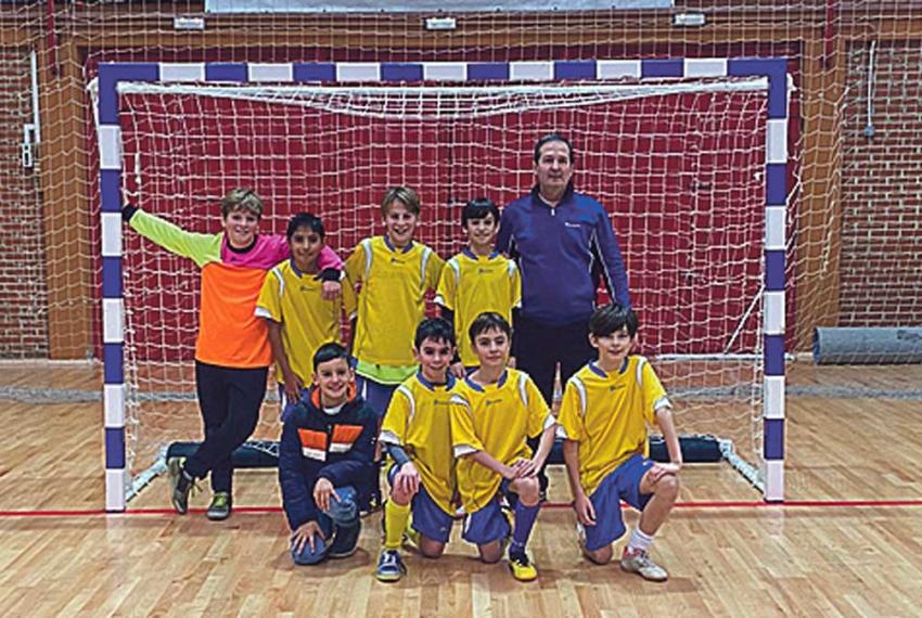 En la foto, arriba (de izq. a dcha.) Diego, Leandro, Marquinio, Teo y Ramón (míster); abajo Simón, Mateo, Mark y Carlos.