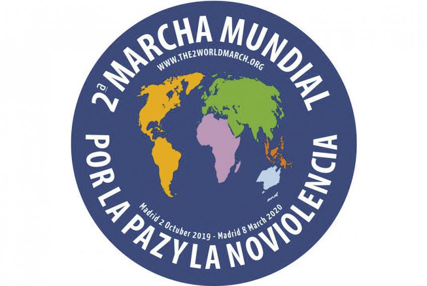 ◂ Logotipo de la II Marcha Mundial por la Paz y la Noviolencia. Actualmente se encuentra en preparación la tercera.