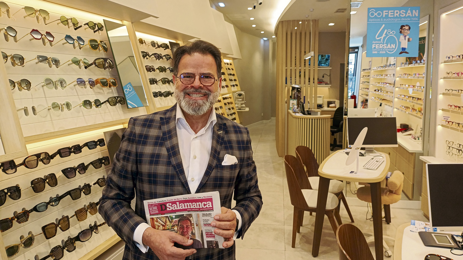 Óptica FERSÁN representa un referente de confianza en el Distrito Salamanca. Ángel Fernández Sánchez, fundador de esta firma especializada en óptica y audiología, celebra este año su 40 aniversario con una trayectoria marcada por excelencia profesional y sensibilidad estética.