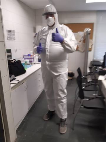 Durante el mes de marzo lo hemos vivido vocacionalmente. Acudíamos al centro de salud con muchísimo miedo, pero lo intentábamos suplir con bastante buen humor, o al menos haciendo un esfuerzo de voluntad para controlar los nervios. Sabíamos que el peligro de contagio era muy alto y lo aceptábamos como parte de nuestra profesión, o mejor, como digo, de nuestra vocación. Al principio el desconocimiento de nuestro enemigo era absoluto y pasábamos consulta prácticamente con lo puesto. Pero en fin, como se dice comúnmente, alguien tenía que hacerlo. Ahora nuestro conocimiento de la enfermedad es mucho mayor, aunque lógicamente aún muy limitado. Disponemos de material suficiente y realizamos las pruebas pertinentes a las personas sintomáticas, que son a las que están indicadas principalmente, y en su gran mayoría están dando negativas. Quiero lanzar un mensaje de tranquilidad, ya que si no se han tenido síntomas recientemente, el riesgo de padecer la enfermedad es relativamente bajo. Por todo ello, estamos más tranquilos, aunque no hay que bajar la guardia, porque el riesgo de rebrote por algún comportamiento irresponsable existe.